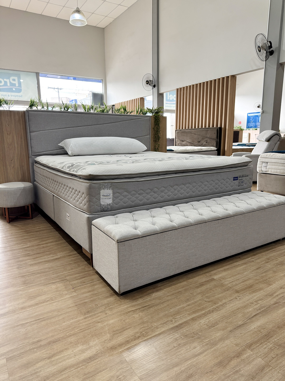 O colchão é um modelo com Nível de Firmeza Macio projetado para máximo conforto e alinhamento corporal, destacando-se pelo molejo de molas ensacadas individualmente. O conforto é ampliado pelo Pillow Super, que combina espuma D24 Soft com fibra siliconada e uma camada de espuma D29 Hiper Soft, sustentando até 120kg por pessoa.